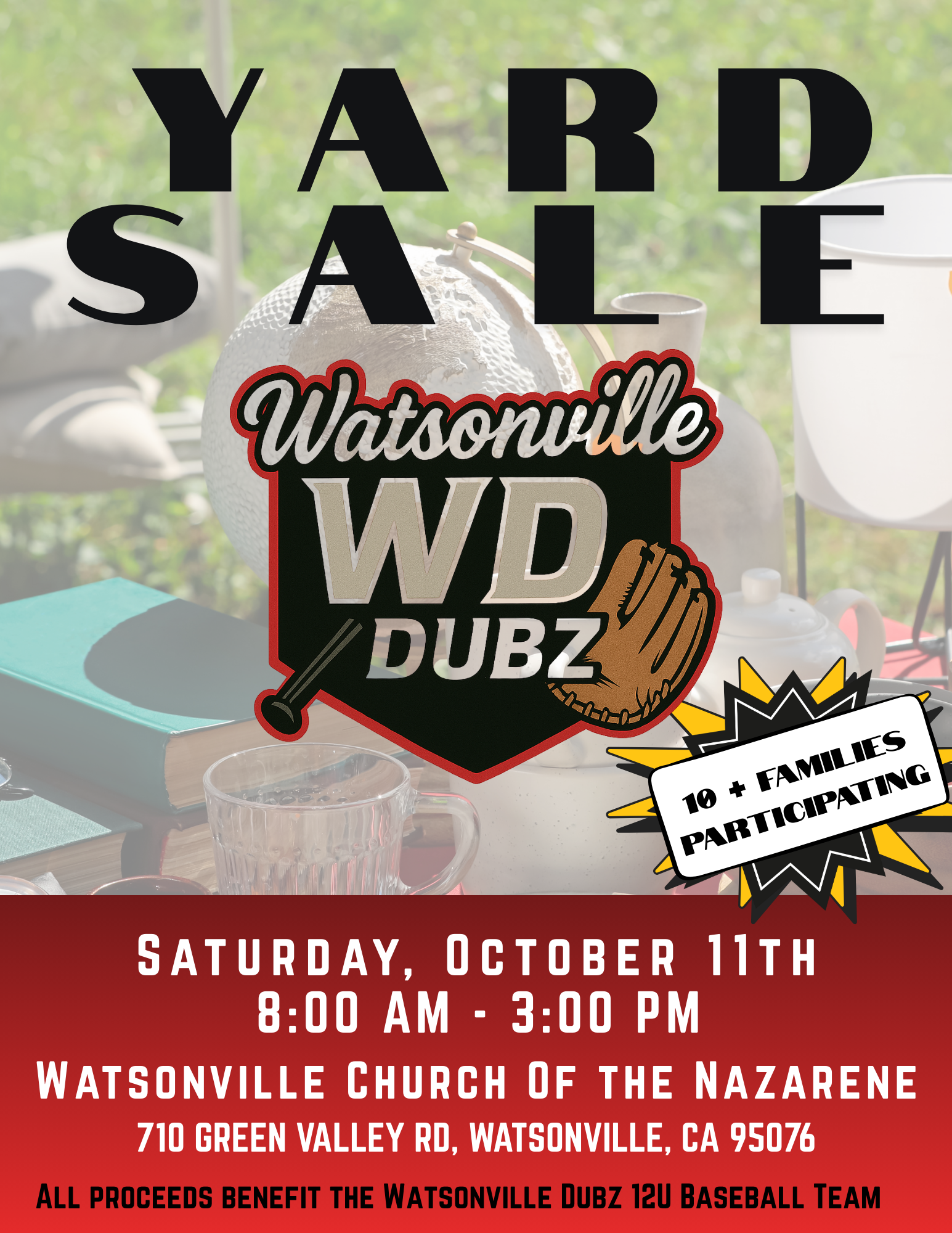 The Yard Sale is held at the Watsonville Church of the Nazarene located at 710 Green Valley Road. Watsonville, CA